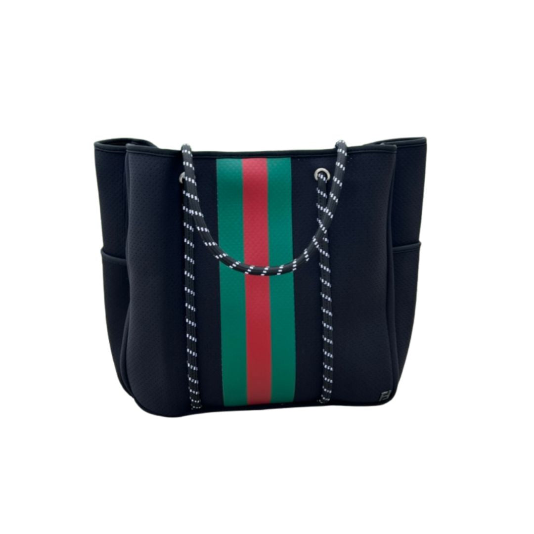 Courtside Small Tote for Tennis, Pickleball and Paddle | Black with Red and Green Stripes
