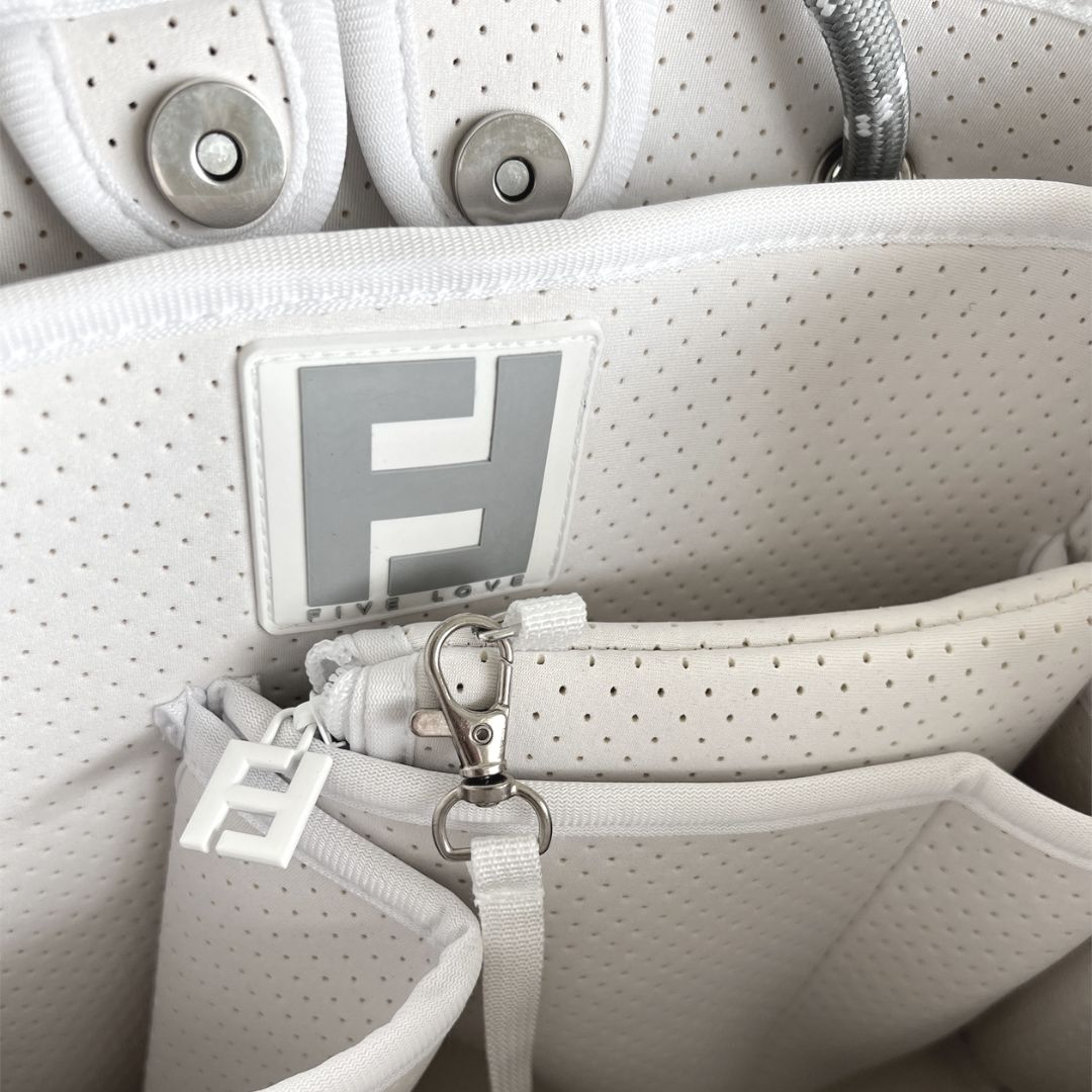 Are you looking for a stylish and practical pickleball bag to carry your pickleball gear to and from the court? Look no further than the white pickleball tote with blue stripes from Five Love!